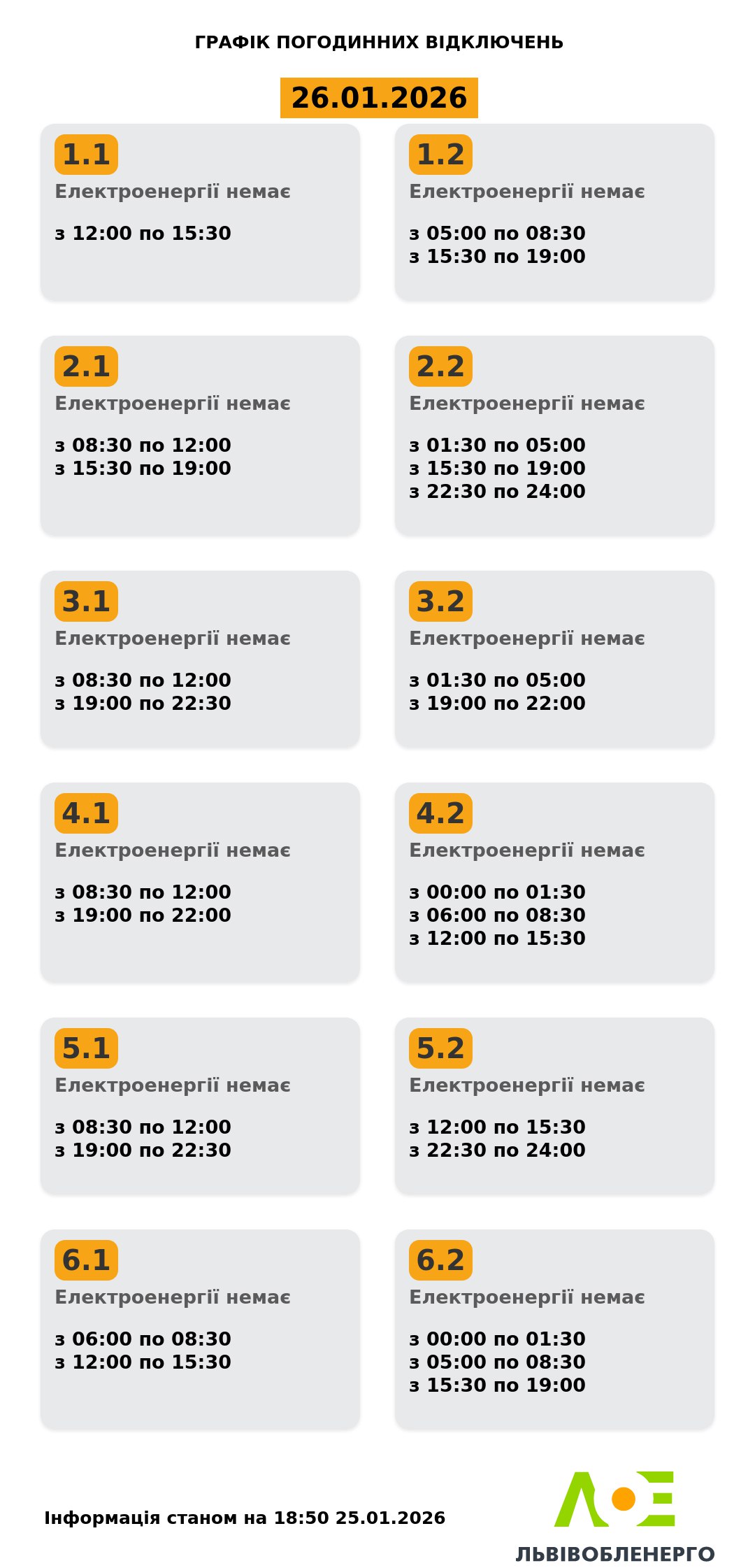 26 січня на території Львівської області застосують графіки планових відключень електроенергії.