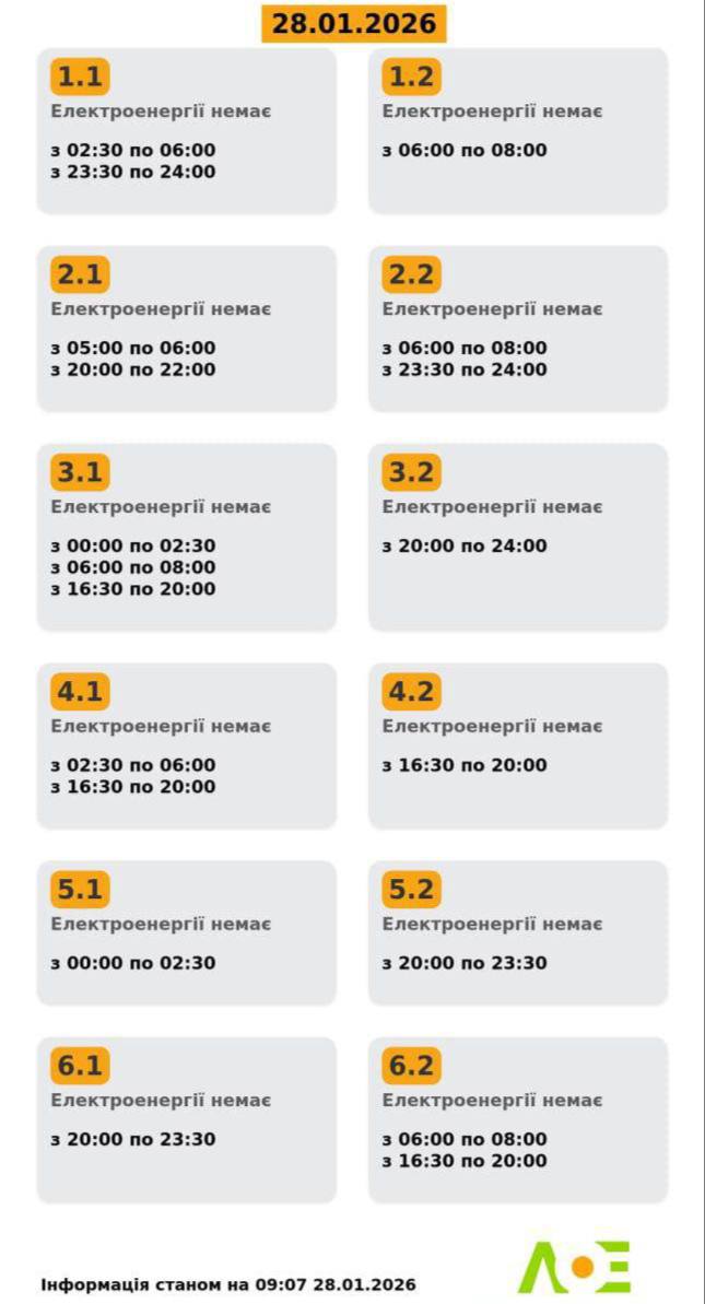 Детальніше про відключення світла у групах можна дізнатися з таблиці.