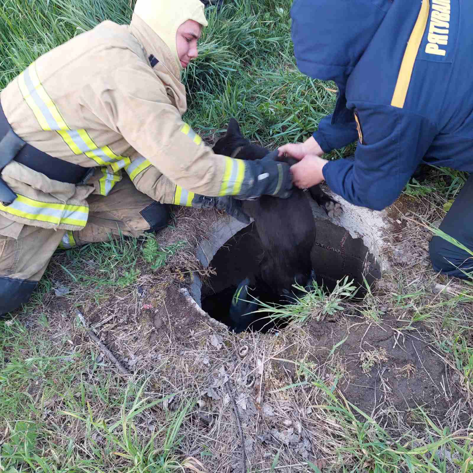 «Петро Євстахійович, не довго роздумуючи, зателефонував до рятувальників, адже самотужки допомогти нещасній тварині не міг. Буквально за лічені хвилини прибули із Кременецького районного управління ГУ ДСНС України у Тернопільській області, пса визволили, а він тільки хвостом вильнув, так тікав, переляканий! Люк закрили гіллям, щоб видно було небезпеку», – написала жінка.
