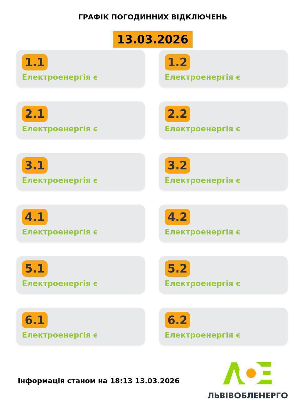 Ввечері 13 березня на Львівщині скасували графік відключення електроенергії.