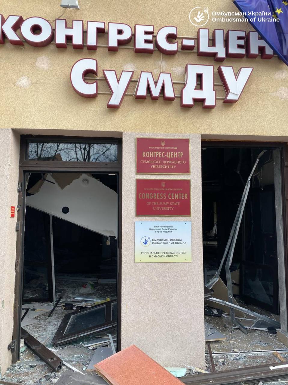 «Суми. Вихідний. Велике релігійне свято для українців — Вербна неділя. День, коли українські родини йдуть до церков, гуляють по місту з дітьми. І саме в цей день Росія завдала чергового ракетного удару по мирному місту — у його центральну частину. В епіцентр удару потрапило і приміщення регіонального Центру захисту прав людини — наше Представництво, яке вщент зруйноване.