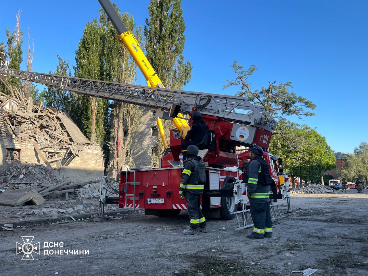 У Краматорську внаслідок авіаційного удару частково зруйновано чотириповерховий житловий будинок. З-під завалів рятувальники деблокували чоловіка 1955 року народження, а також врятували жінку та дівчинку 2010 року народження.