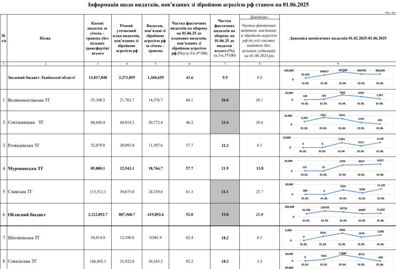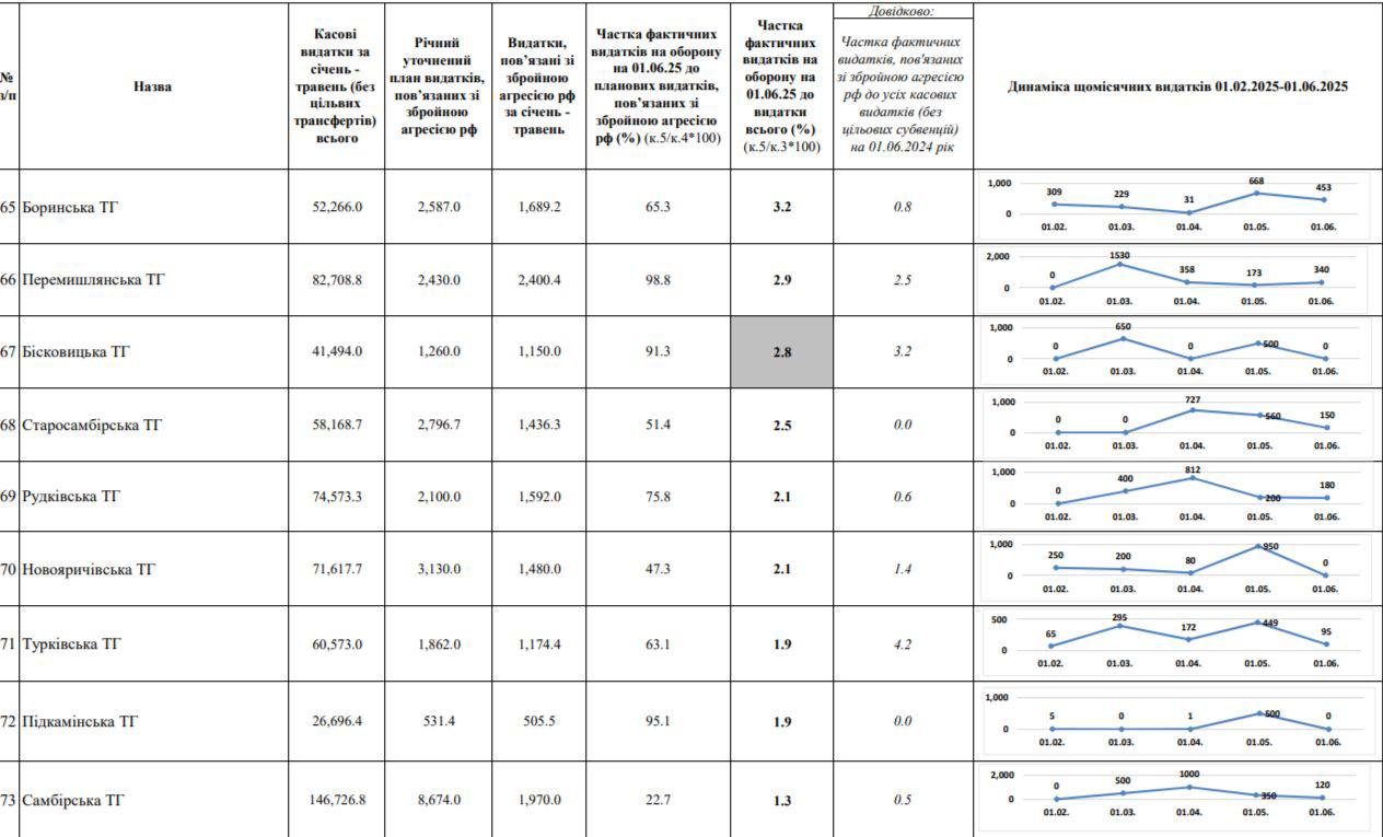 Крім того, невисокий рівень витрат на потреби ЗСУ зафіксували також у: