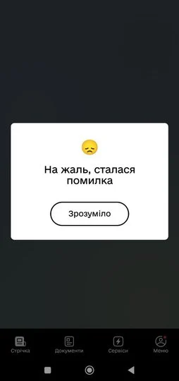 При спробах увійти в додаток з’являлося повідомлення «На жаль, сталася помилка». Практично одразу в службі підтримки "Дії" повідомили, що знають про проблему та працюють над її усуненням. Через пів години застосунок відновив нормальну роботу.