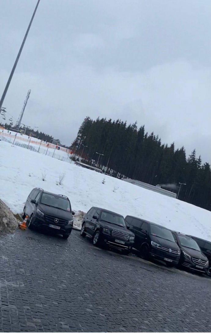 Автомобілі з президентського кортежу за фіксували на паркувальному майданчику біля готелю «Radisson Blu Resort Bukovel».