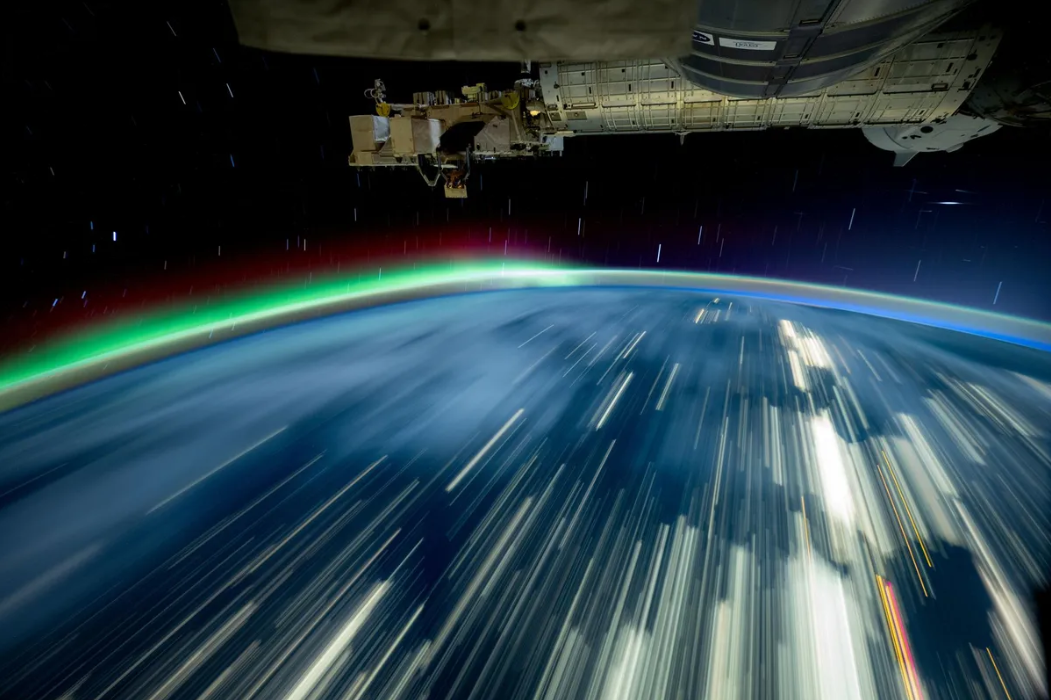 На знімку видно вогні міст, розташованих під МКС, а також яскраве полярне сяйво на горизонті. Це явище виникає в результаті взаємодії енергетичних частинок від Сонця з верхніми шарами земної атмосфери.