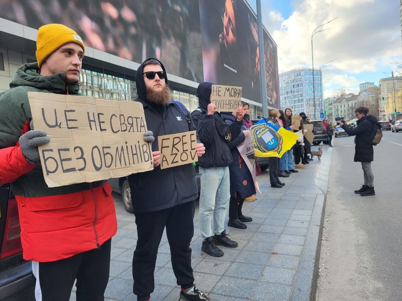 Родичі захисників Маріуполя, зокрема, «азовців», об'єдналися, щоби разом боротись за звільнення військовополонених. Цього разу рідні та друзі військовополонених влаштували мітинг біля ТРЦ Gulliver. Вони вишикувались уздовж проїжджої частини з плакатами в руках. На них були слова: «19 місяців у полоні», «Полон убиває», «Free Azov», «Святкувати не можна мовчати». На екрані торгово-розважального центру теж з'явився напис: «Не мовчи!».