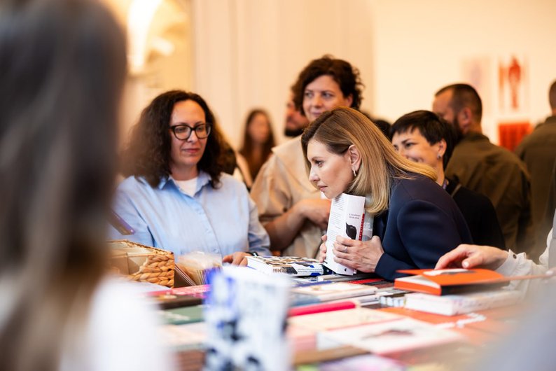 Серед придбань Олени Зеленської – врятовані зі знищеної росіянами друкарні «Фактор-друк» «Ізмарагд княгині Несвіцької» Олександра Ірванця та «Мисливці за щастям» Валерія Пузіка, а також «Вірші та пісні» Гліба Бабіча та «Дім для Дома» Вікторії Амеліної, які загинули під час повномасштабної війни.