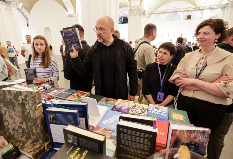 Прем'єр-міністр Денис Шмигаль на «Арсеналі» придбав «Архіви КГБ» Едуарда Андрющенка, «Лазарус» Світлани Тараторіної та «Я перетворююсь...» Володимира Вакуленка-К, якого росіяни вбили під Ізюмом 2022 року.