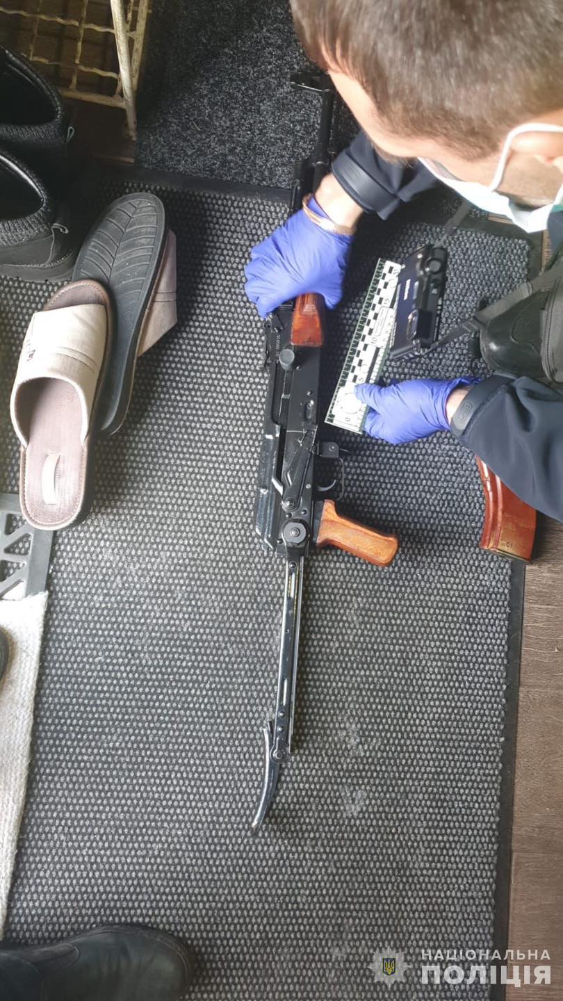 Під час обшуку у нього знайшли зброю, боєприпаси, мобільні телефони, електронні носії, камуфляжний одяг, гранату Ф-1 та запал.