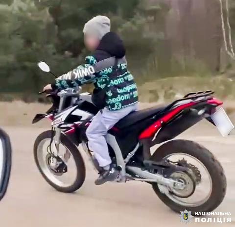 Правоохоронці виявили порушення під час моніторингу соціальних мереж, де було опубліковано відео, на якому дитина їздить на двоколісному транспортному засобі. Як з’ясували поліцейські, 17-річна місцева жителька, яка керувала мотоциклом "Loncin", під час руху знімала відео, де її товариш, 10-річний односельчанин, також керує іншим мотоциклом тієї ж марки без мотошолома.