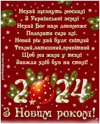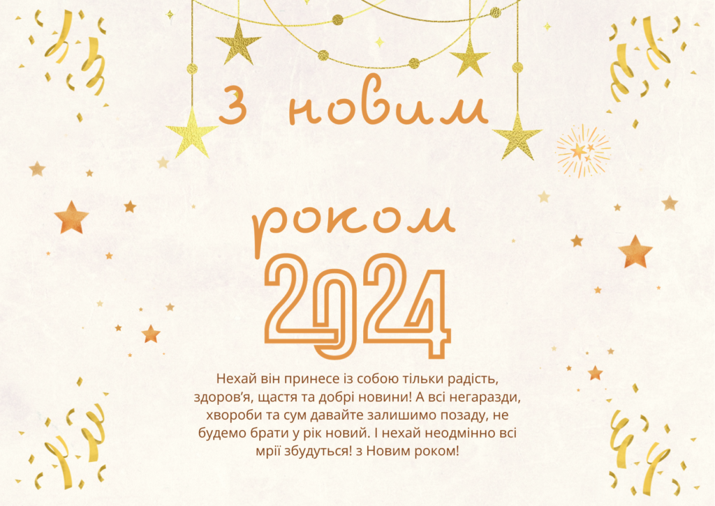 У новий 2024 рік нехай увійде гармонія в душі, спокій і затишок, а життя буде сповнене новими перемогами, приємними зустрічами та щирими людьми.