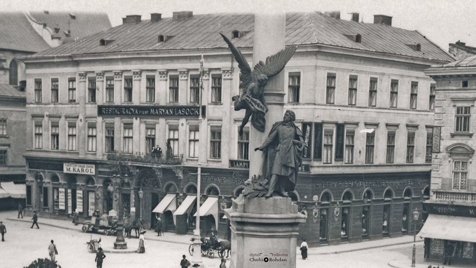 Раніше на площі Міцкевича, 9 була кам’яниця – пам'ятка архітектури національного значення збудована ще у 1839 році. Через часткову руйнацію, будівлю знесли у 1997 році, а вже через рік почали говорити про забудову спорожнілої ділянки.