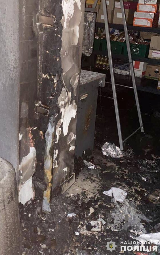 Вогонь пошкодив вхідні двері у магазин, обладнання та частину товару. Постраждалих немає.