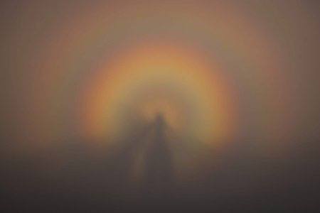 Це створює ілюзію велетенської тіні, яку оточує яскравий райдужний ореол (глорія).