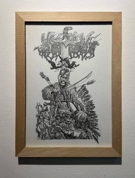 Йдеться про ілюстрацію до поеми Ліни Костенко «Берестечко», яка належить родині митця. Робота була представлена в межах виставки «Ілюстрації в олівці».