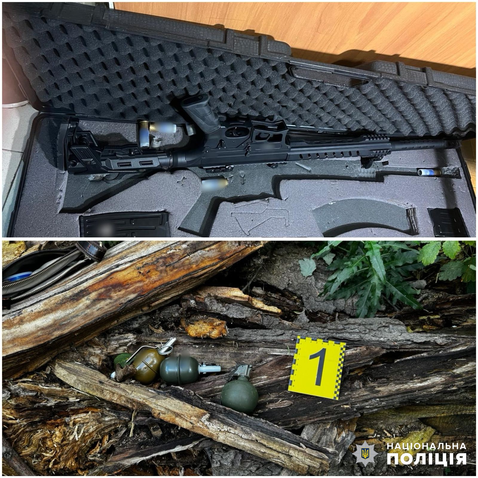На місці події знайшли два ножі та сумку, в якій виявили три ручні гранати, дві з яких, за попередньою інформацією, є бойовими.